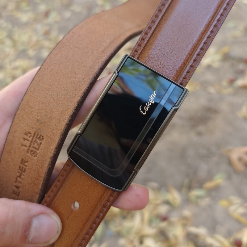 کمربند چرم طبیعی گاوی تک لایه با سگک پلاکی KG35PA14
